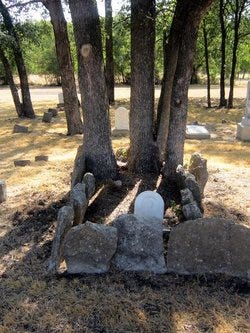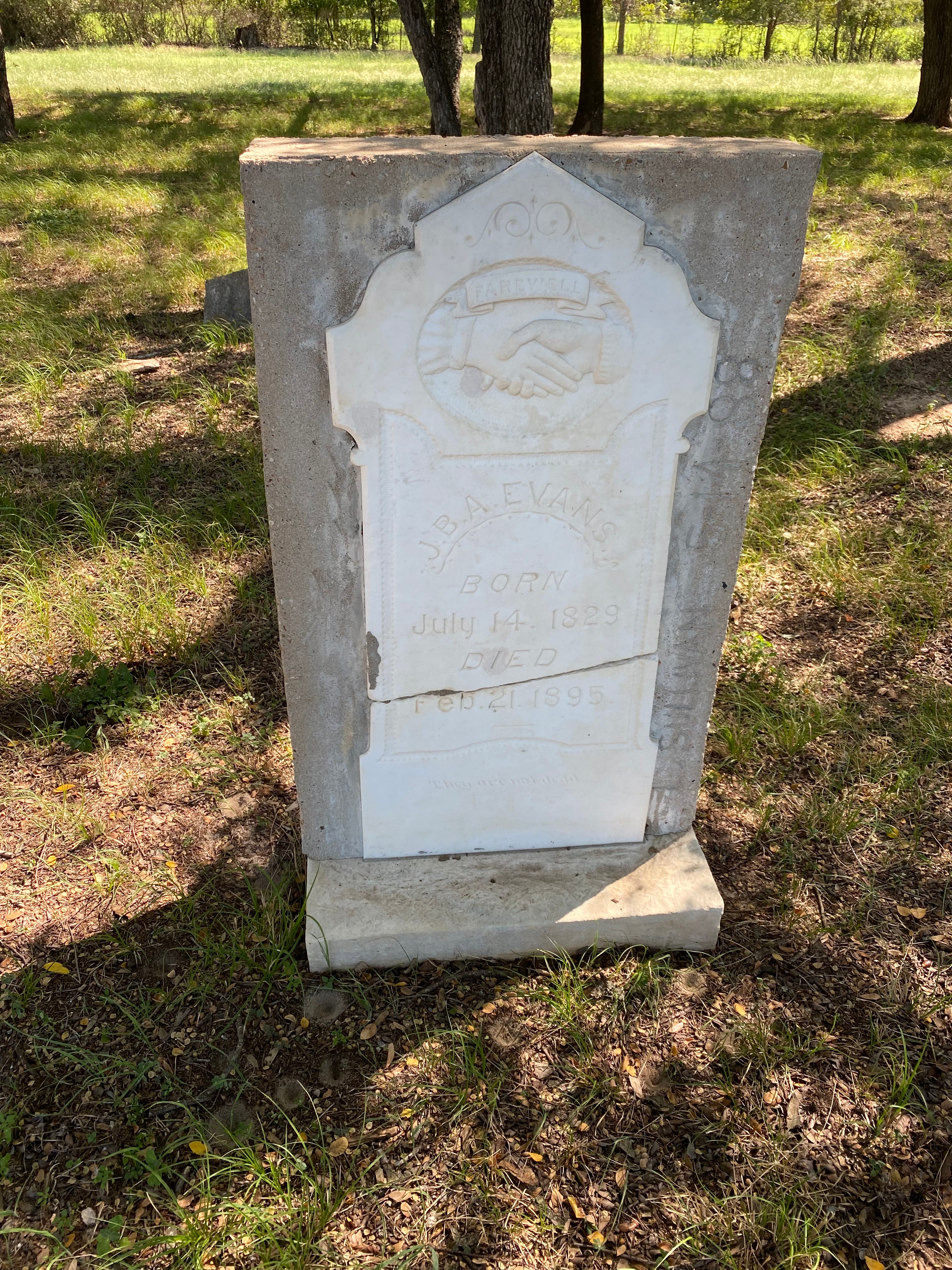 William died at the age of 72, on June 6, 1878, in Parker County, Texas. He and his grandson had gone on horseback to see the swollen creek. He was very bent over in his old age and when he waded into the creek, he was swept into the flooding water and drowned. It was three days before his body was located as it had washed up a few miles downstream. He is buried about a quarter mile off this creek in the Cole-Markham Cemetery in Aledo, Texas. The cemetery is located on private property but the owners are very gracious about visitors and consider it an honor to have the cemetery on their land.